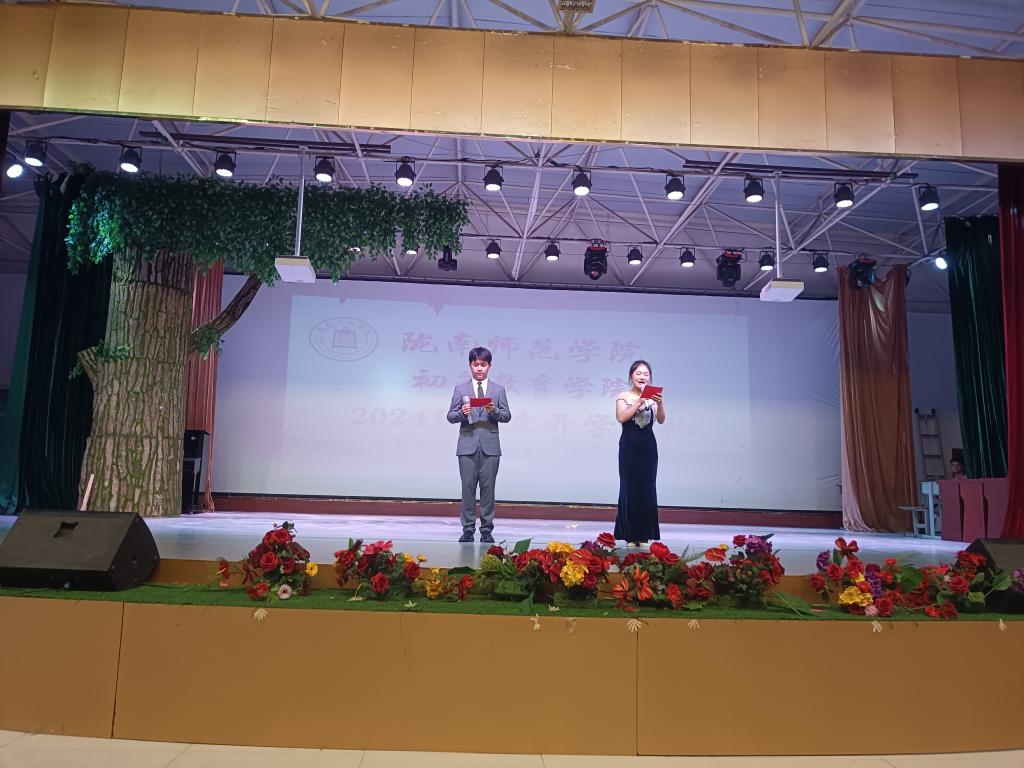 2024年9月7日晚,陇南师范学院初等教育学院2024届新生开学典礼暨特长课教学部分成果汇报演出在北校区礼堂顺利举行。学院党总支书记田广、学院负责人宋彩琴、副院长颉静及部分教师出席此次活动。本次活动由初等教育学院团总支承办,学院办公室、学院教务科、音乐教研室、美术教研室协办。