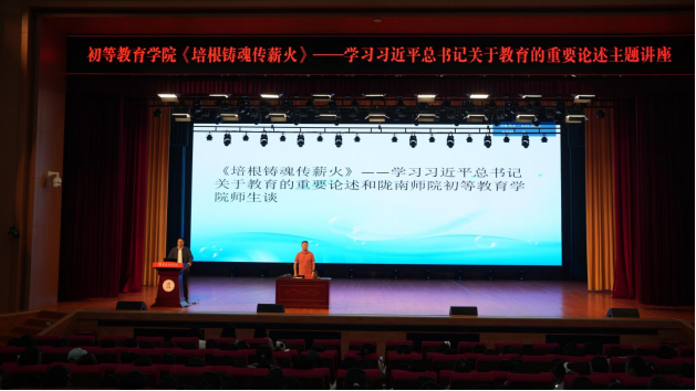 为深入学习领会习近平总书记关于教育的重要论述,引领全体师生进一步凝聚思想共识、强化使命担当。9月22日晚,学院邀请原西北师范大学教育学院、教师培训学院党委书记杨旭东作主题讲座。讲座由学院党总支书记田广主持,全院师生参加。
