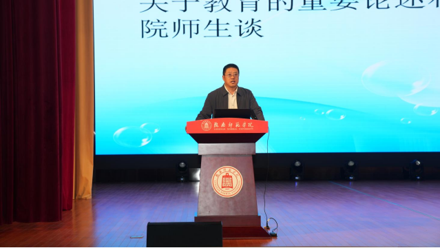 杨旭东以“培根铸魂传薪火”为题,紧紧围绕习近平总书记关于教育的重要论述。理论联系实际,结合鲜活案例,深入分析了习近平总书记围绕建设教育强国新使命提出的一系列新理念、新思路、新方法、新举措。