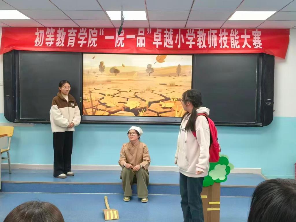 2025年11月17日晚七点,初等教育学院举行了“一院一品”第六届卓越小学教师技能大赛。为实现多学科融合育人的目标,大赛采取跨专业组队形式,团队涵盖小学教育、英语、学前教育等多个专业的学生。