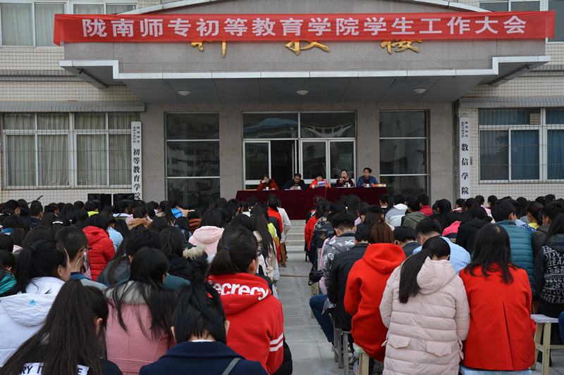 2017年3月7日下午,初等教育学院在科技楼前召开学生工作大会。学院党总支书记张惠玲、副院长鹿凤琴、学生党支部书记李昊涵、团总支负责人李亚彤、辅导员及全院学生参加了会议,会议由副书记赵建进主持。