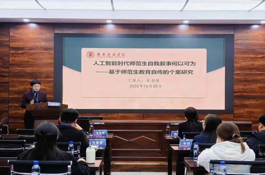 在本次论坛中,宋彩琴院长主持“AI驱动的个性化学习与教师数字素养”分论坛,并在分论坛中发表以《人工智能时代师范生自我叙事何以可为——基于师范生教育自传的个案研究》为主题的报告。她从师范生教育自传切入,深入剖析人工智能时代师范生如何构建自我叙事,为师范生在智能时代的专业成长与身份认同提供了全新视角,其研究的创新性与实践价值引发了参会专家学者的广泛关注与热烈讨论。